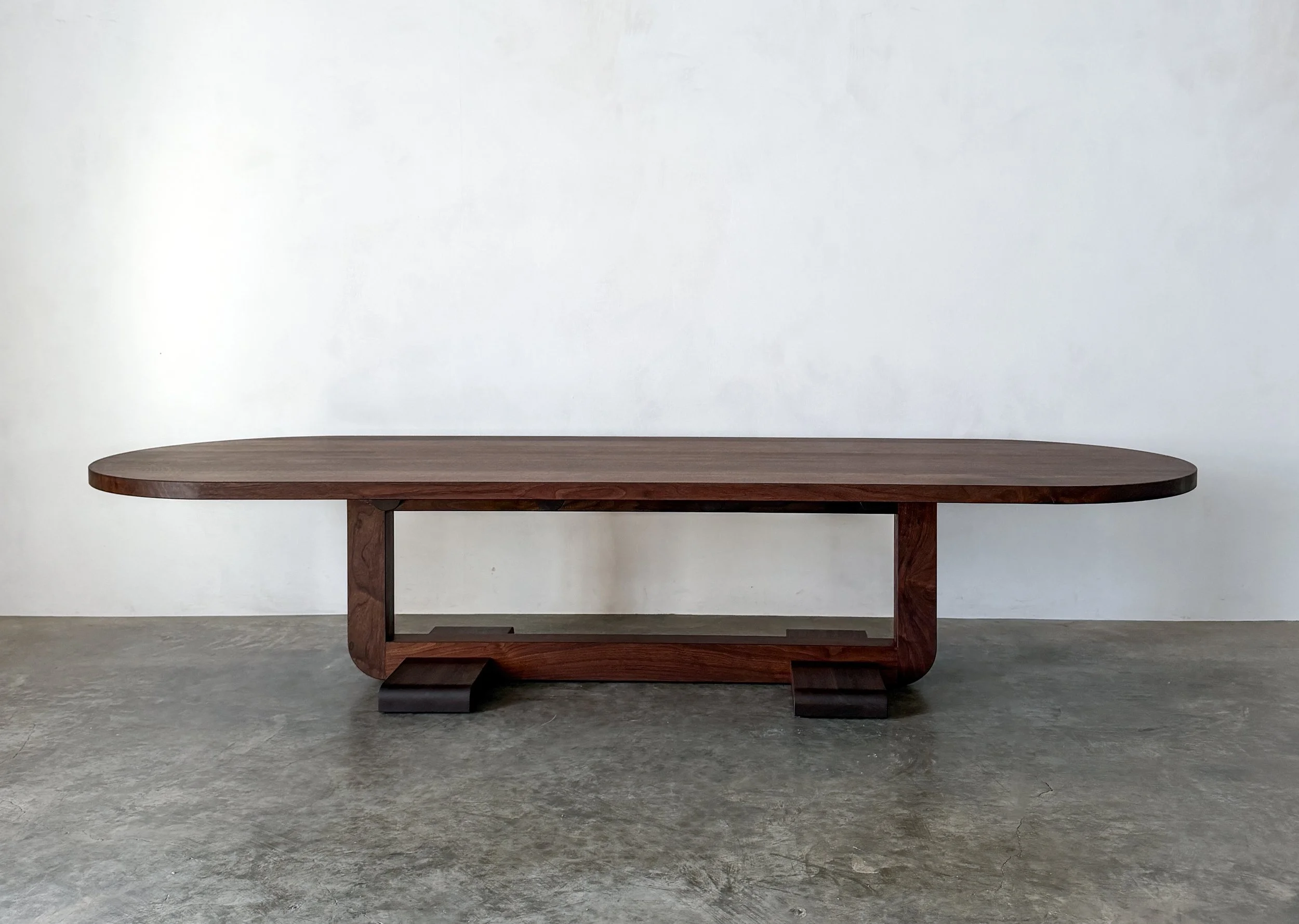 The Alpen Long Dining Table is our version of the classic family table. It features a sculptural trestle base with a solid hardwood top.