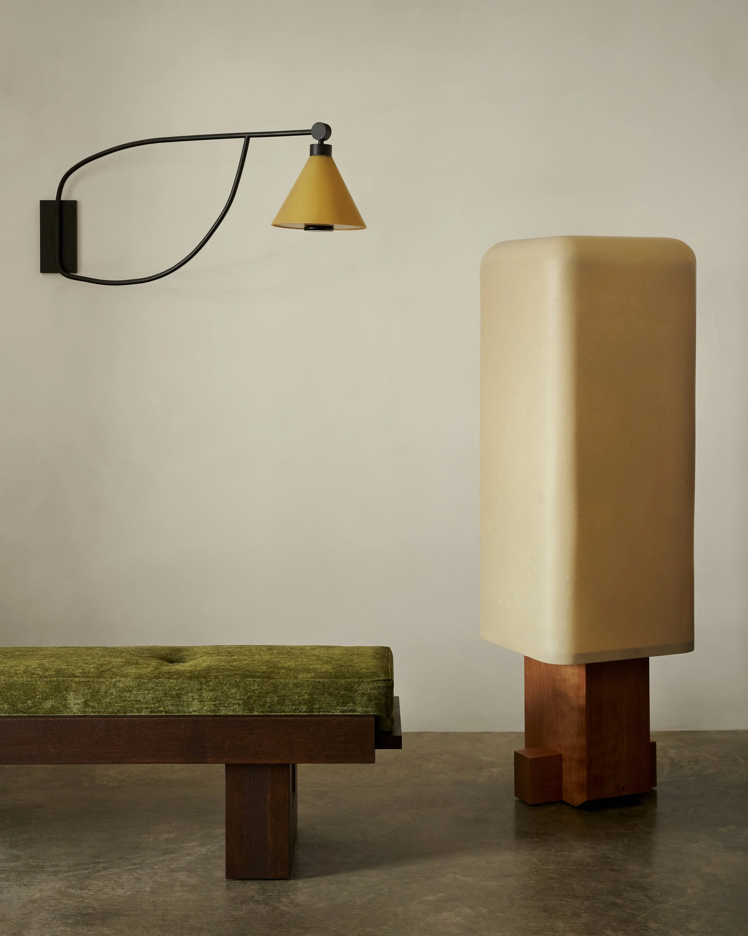 The Bill Floor Lamp continues Fern’s exploration into sculptural lighting that is an extension of the laminated wood furniture pieces Fern has become known for.