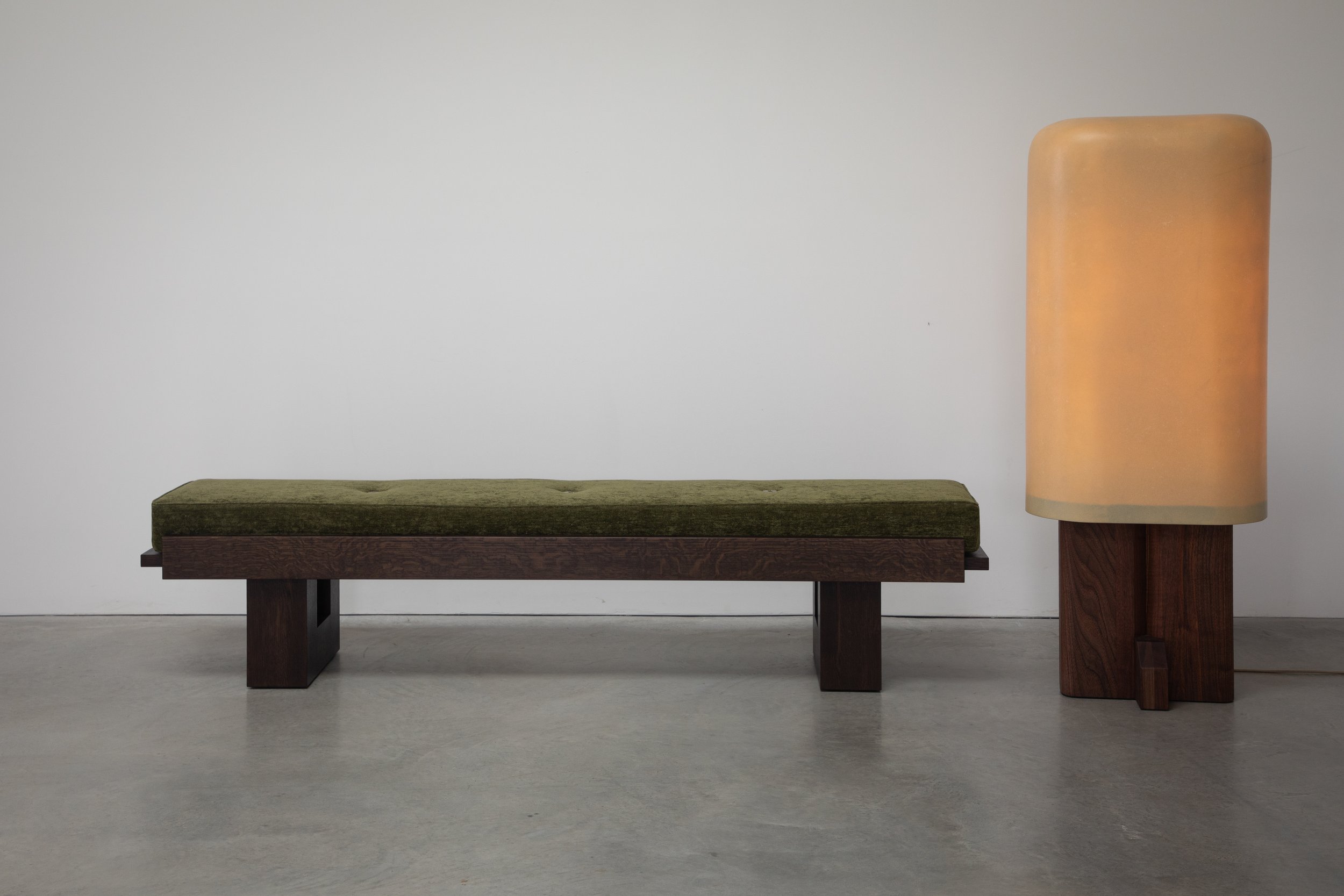 The Highland Bench features a comfortable 5-inch cushion set upon a sturdy hardwood frame. Like Catskills river stones, the cushion buttons are sand cast from white bronze.
