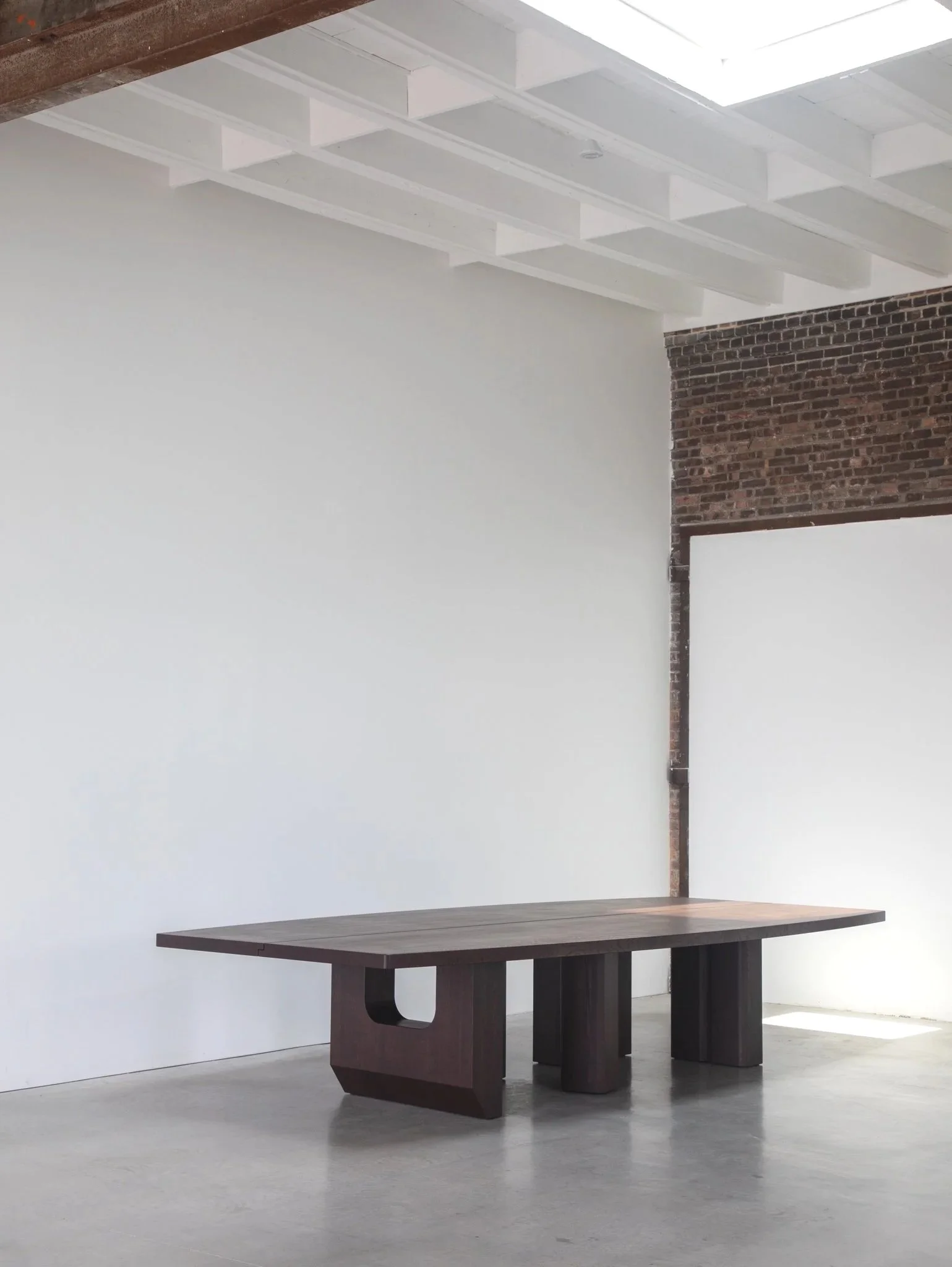 Inspired by the rock formations of Texas’ Palo Duro Canyon, the Tulia Dining Table features monumental sized base components constructed from laminated hardwoods.