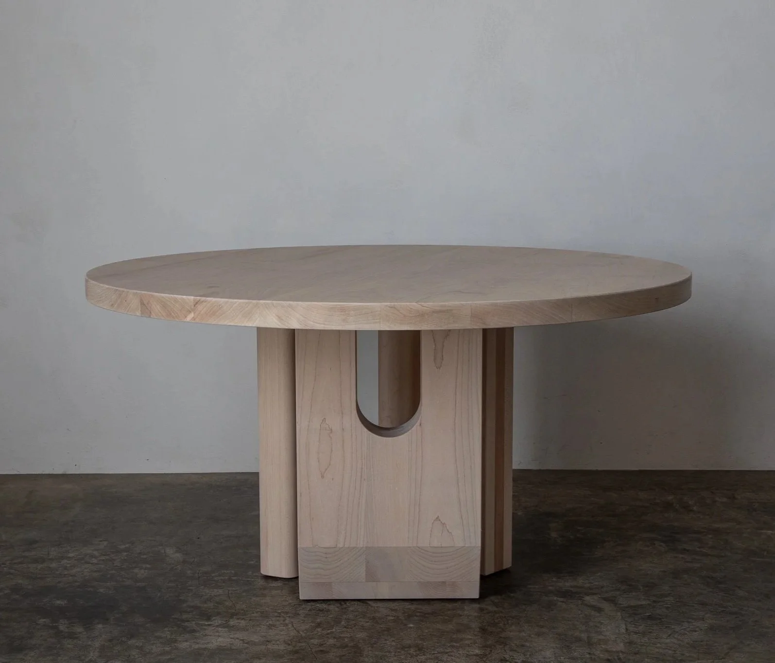 Inspired by the rock formations of Texas’ Palo Duro Canyon, the Tulia Round Dining Table features monumental sized base components constructed from laminated hardwoods.