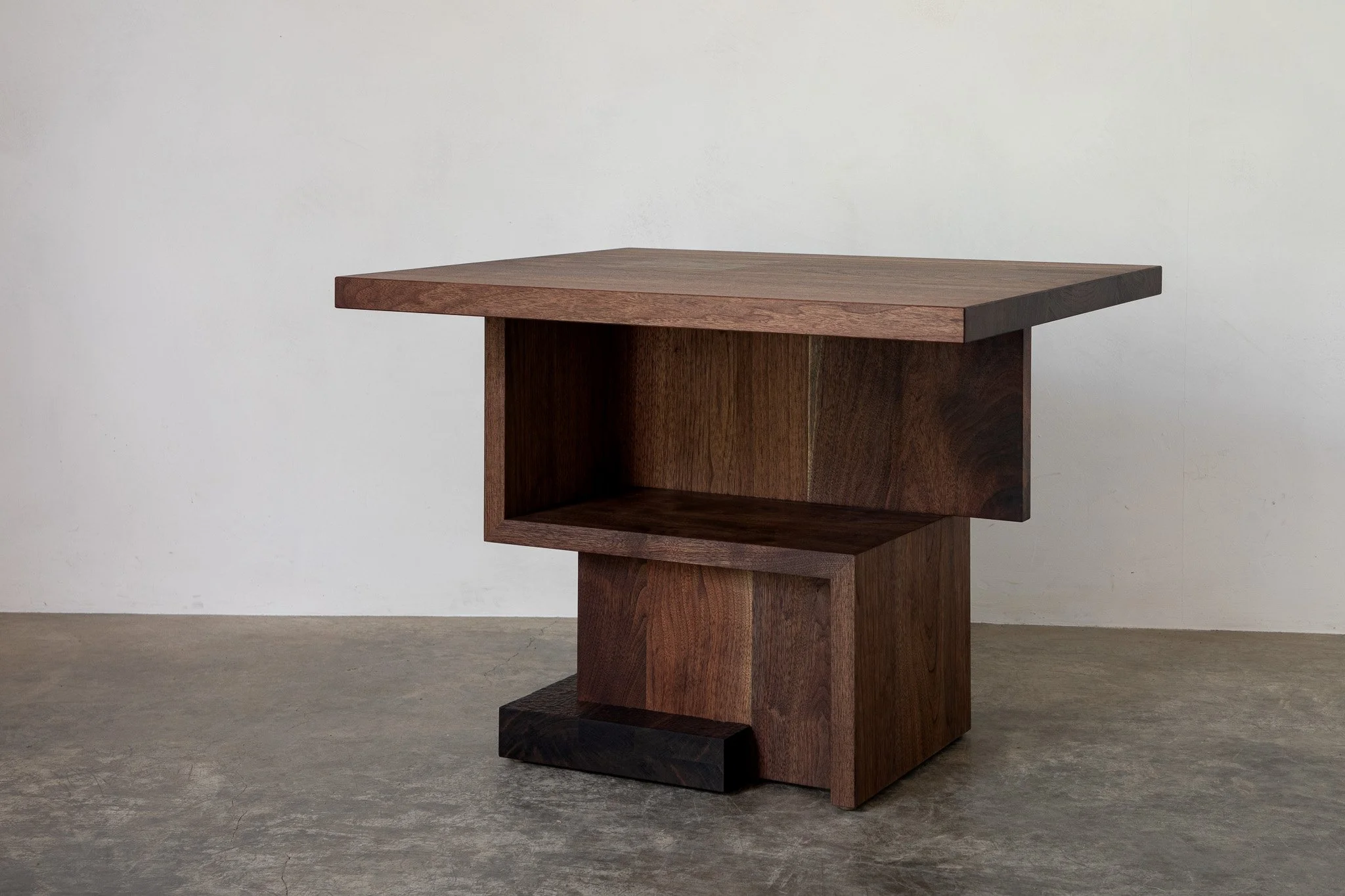 The Zig Side Table functions well from any angle. It is constructed in a pattern that provides multiple shelving surfaces accessible from different directions.